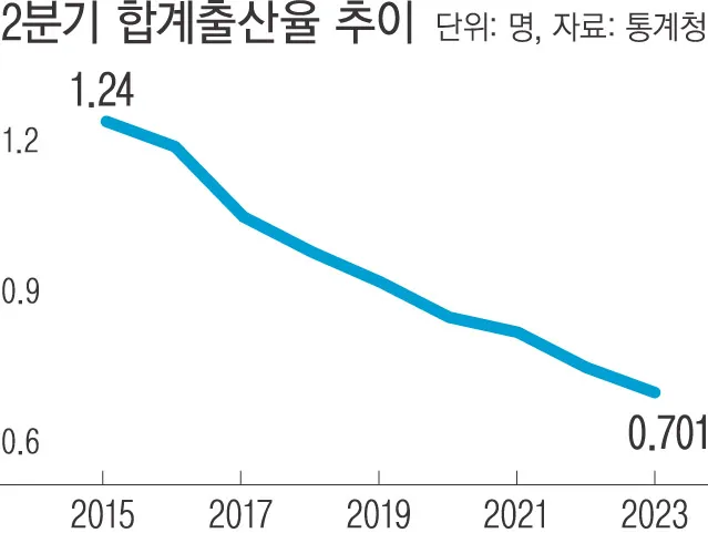 올해 2분기 합계출산율이 0.7명으로 역대 최저치를 기록했다. 지난해 말 0.78명까지 떨어진 합계출산율의 하락세가 이어지면서 0.7명대도 위태로운 상황이다. 특히 과도한 주거비와 양육부담에 따